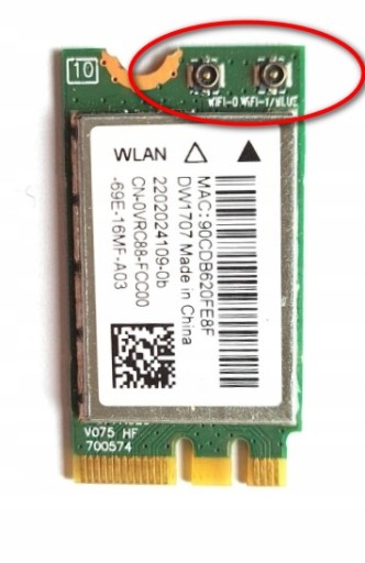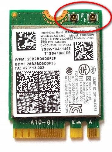 PRZYKŁADOWY MODEL KARTY W FORMACIE NGFF / M.2 JAK NA FOTO. ANTENY NIE BĘDĄ PASOWAŁY DO KART WIFI ZE ZŁĄCZEM mPCIe - TYLKO M.2. / NGFF.