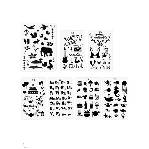 Dodatkowe 7 arkuszy szablonów PE bez ostrych krawędzi ułatwiających czyszczenie. Każdy arkusz zawiera wiele pięknych wzorów, które inspirują kreatywność na papierze.
