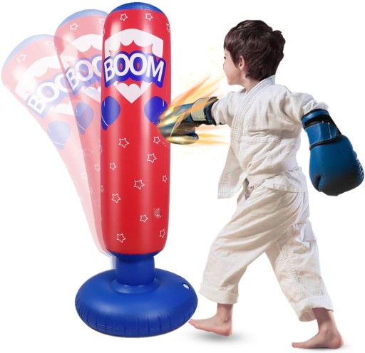 Jeżeli Twoje dziecko jest zainteresowane sportem to nie ma na co czekać. Doskonałym prezentem będzie nadmuchiwany worek bokserski . Świetna zabawa i niezapomniany trening w jednym. Zestaw rozwija koordynację ruchową, szybkość, zwinność i zdolność uników. Wyszczupla sylwetkę, świetnie poprawia motorykę i szybkość dziecka.