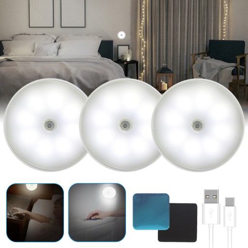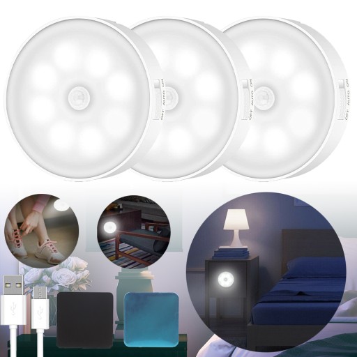 НОЧНИК СВЕТОДИОДНАЯ ЛАМПА С ДАТЧИКОМ ДВИЖЕНИЯ USB НАСТЕННЫЙ СВЕТИЛЬНИК МАГНИТ 3 шт.