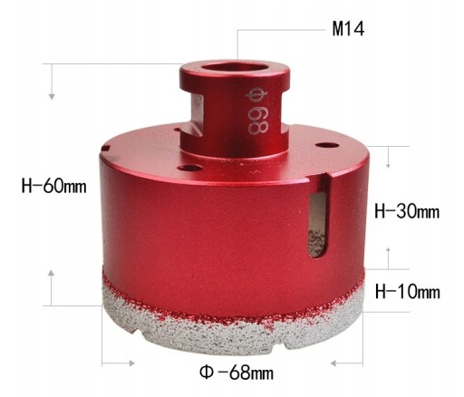 Zestaw składa się z aż 5 otwornic diamentowych: 68mm, 35mm, 10mm, 8mm, 6mm oraz adaptera do wiertarki