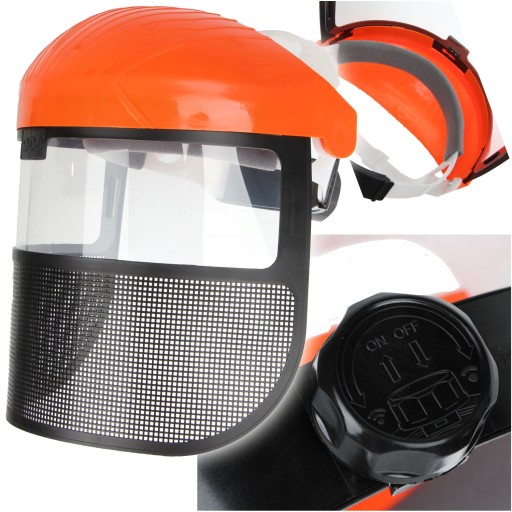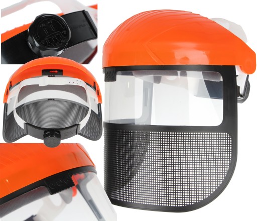 - piłą elektryczną, oraz innymi urządzeniami, zapewniając kompleksową ochronę twarzy, oczu i czoła.