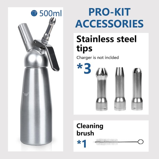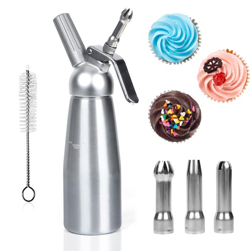 Odpowiednie narzędzie do lekkiego, podstawowego kremu zawartego z podziałem na składniki, smaczniejszego i zdrowszego niż jego sklepowy prawk. Wszystko, co jest dostępne do 16 uncji śmietany. Idealny zamienniki wypływach rękawów do wyciskania i deserów podczas przygotowywania deserowych musów, lodów, masła, a nawet jajecznicy! Idealnie nadaje się również do nastrzykiwania śmietanki lub kremu do wypieków lub do zalewania owocowym alkoholem.