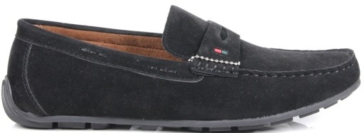 CZARNE ZAMSZOWE ELEGANCKIE MOKASYNY WSUWANE DLA PANÓW