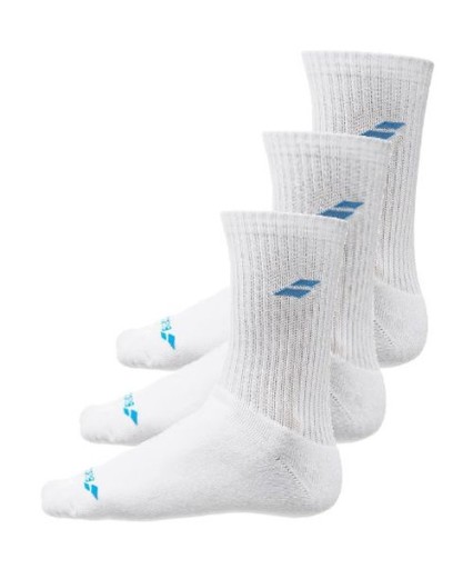 Babolat 3 Pairs Pack Socks - uniwersalne skarpety sportowe do do ćwiczeń i treningów na kortach (tenis, squash, badminton) w siłowni, czy na sali (piłka ręczna, siatkówka itp.) oraz na co dzień. Grube, komfortowe i przyjemne w noszeniu skarpety bawełniane.