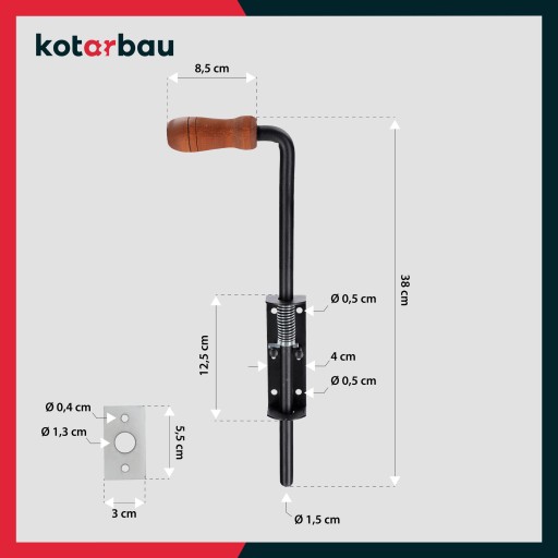Zasuwa do profilu w kolorze czarnym z drewnianą rączką sprawdzi się na prywatnych posesjach i w miejscach publicznych. Optymalna długość 38 cm sprawia, że pasuje do większości bram, furt i innych konstrukcji.