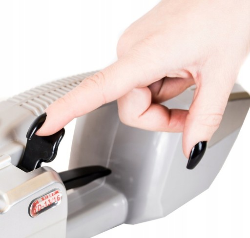 Prasa ręczna wykonana jest z wysokowytrzymałego stopu aluminium, żelaza i tworzyw sztucznych, które są trwałe i solidne. Bloker noża mocuje taśmę.