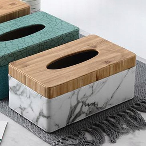 Rectangular Wooden Tissue Box Face Tissue Cover for Marbling Restaurant