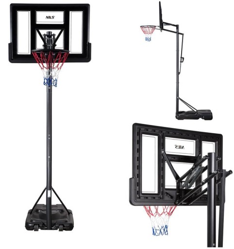 - Zestaw zawiera: Nową, oryginalną tablicę do koszykówki marki NILS, Obręcz, Siatkę, stojak