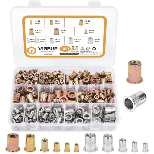 НАБОР ЗАКЛЕПКА-ГАЙКИ 300 ШТ. ЗАКЛЕПКА-ГАЙКА M3-M10 MIX 300 ШТ АЛЮМИНИЙ + СТАЛЬ