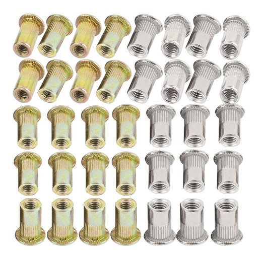 Zestaw 300 nitonakrętek aluminiowych i stalowych. W opakowaniu rozmiary M3, M4, M5, M6, M6, M10.