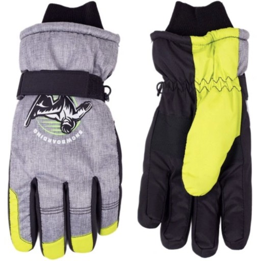 Zimowe rękawiczki narciarskie dla chłopca. modny wzór. Ściągacz na górze, dodatkowo spinane na rzep.