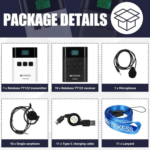 Retekess TT122 System Przewodnika Turystycznego, Przewodnika Audio dla Gości 2.4G, System Tłumaczenia Językowego, Kościelny System Tłumaczeń dla Turystyki, Fabryki, Konferencji, Muzeum