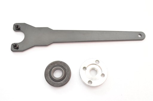 Witam sprzedam to co widoczne na zdjęciach komplet w cenie promocyjnej klucz nakrętka oraz podkładka do szlifierek kątowych o średnicy tarczy 230 mm.Długość klucza 228 mm