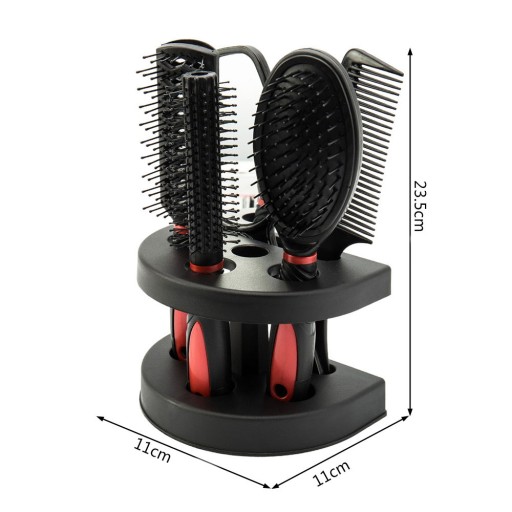 Jeżeli szukasz czegoś, co pozwoli Ci wygodnie zająć się pielęgnacją Twoich włosów lub szczotek, które sprawią, że codzienne czesanie nie będzie walką samym z sobą i stanie się przyjemnością, to idealnie trafiłeś. Nie ważne czy szukasz czegoś do pielęgnacji włosów długich, krótkich, prostych, zakręconych, suchych czy mokrych. Ten zestaw będzie jedynym, który będziesz potrzebować, ponieważ każda ze znajdujących się w zestawie szczotek nadaje się do innego zadania – szczotka do masażu wymasuje Ci głowę i poprawi ukrwienie, szczotka płaska pomoże w większości przypadków, szczotka do stylizacji pomoże Ci ułożyć wymarzoną fryzurę, grzebień rozczesze nawet najbardziej niesforne włosy, kompaktowe lusterko uratuje Ci skórę wszędzie po za domem, a kompaktowy stojak ułatwi przechowywanie szczotek.