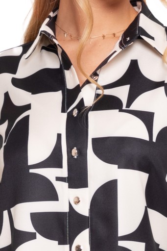Koszula charakteryzuje się unikalnym wzorem geometrycznym, który dodaje jej charakteru i współczesnego wyglądu. Rękawy o długości 3/4 są praktycznym rozwiązaniem, zapewniającym swobodę ruchów, a jednocześnie pozwalającym na prezentację eleganckiego zegarka czy bransoletki. Dodatkową funkcjonalnością jest możliwość podwinięcia rękawów i zapięcia ich na stylowy pasek z guzikiem, co pozwala na dostosowanie wyglądu koszuli do temperatury lub pożądanego stylu.