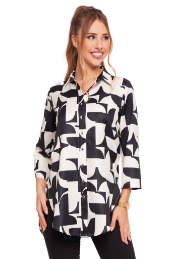KOSZULA DAMSKA ELEGANCKA DŁUGA RĘKAW 3/4 GEOMETRYCZNY WZÓR MODNA MORAJ XXL