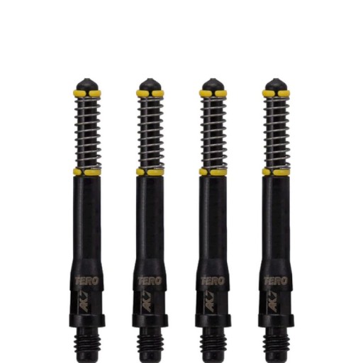 Shafty CUESOUL TERO AK7. TERO to innowacyjny opatentowany system od CUESOUL, dobrze zaprojektowany wbudowany sprężynowy system teleskopowy i obrotowy. Dzięki systemowi TERO unikniesz kłopotów związanych z ciągłym podnoszeniem piórek podczas gry. Obrót piórka (Ak4) bez odczuwalnego chybotania! Ośmiokątny kształt na krawędzi nasadki pomaga ją wygodniej dokręcić lub poluzować. Zestaw zawiera 4 sztuki shaftów TERO. Idealne do rzutek z plastikową i stalową końcówką, shafty AK7 nalezy łączyć z piórkami AK4