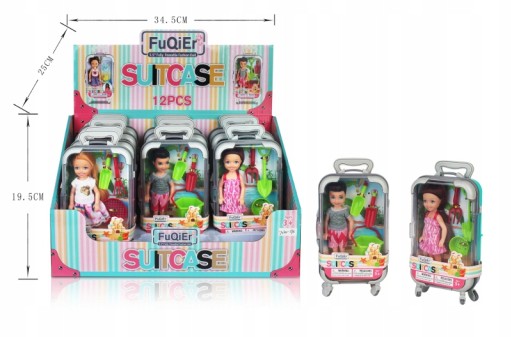 LALKA W WALIZCE MINI ZESTAW PLAŻOWY RÓŻNE WZORY