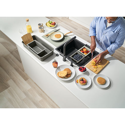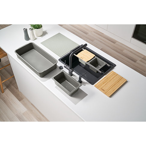 Franke AllIn Zestaw akcesoriów szyna teleskopowa + deska kuchenna + wkładki ociekowe + mata silikonowa + pojemniki + bambusowa przykrywka 112.0655.489