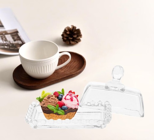 - Szklana pokrywka sprawia, że masło zachowuje swoją świeżość na dłużej..
