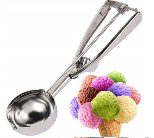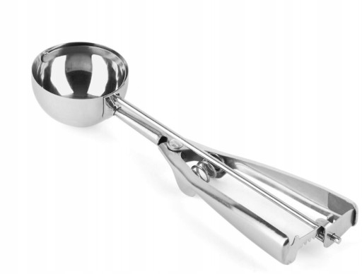 - Łyżka ze stali nierdzewnej do formowania gałek lodów, również do nabierania surowego ciasta muffinowego, odpowiednia do musów czekoladowych i twardych kremów.