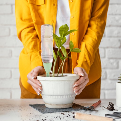 - Kontroluj stan wody w butelce i wilgotność podłoża w doniczce.