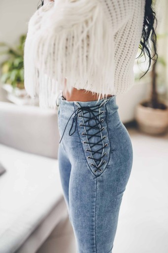 Jeansowe dekatyzowane spodnie damskie.