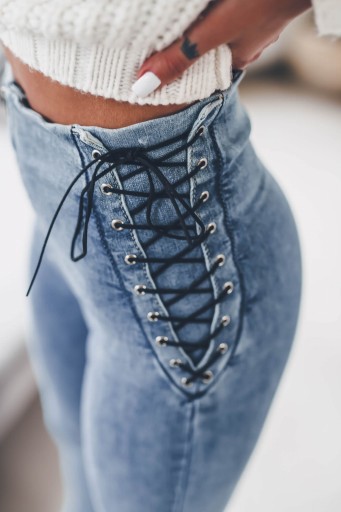 Женские джинсовые трекинги с завязками по бокам, завышенная талия, молния XL.
