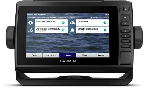 Wbudowany moduł Wi-Fi® umożliwia sparowanie z bezpłatną, uniwersalną aplikacją mobilną i uzyskanie dostępu do usługi OneChart™, danych społeczności Garmin Quickdraw, powiadomień z telefonu i nie tylko1.