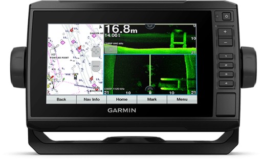 Ten ploter nawigacyjny obsługuje wiele przetworników firmy Garmin (do nabycia osobno), w tym echosondę skanującą Panoptix LiveScope™ umożliwiającą obserwację w czasie rzeczywistym wszystkiego, co znajduje się wokół łodzi.