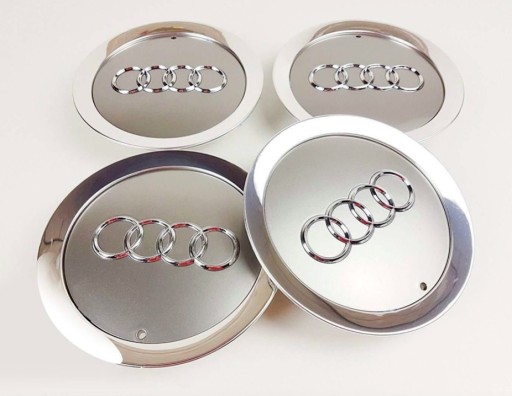 Nowe dekielki AUDI 4E0601165A, GERMANY, średnica 145mm, środek kolor grafitowy, posiadają folie ochronne, zapakowane fabrycznie.