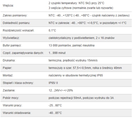 - Zarejestrowane pomiary temperatury są przechowywane w nieulotnej pamięci o pojemności 13 tys. pomiarów. Częstotliwość rejestrowania temperatury (z zakresu od 1 do 999 minut) może być swobodnie ustawiona w intuicyjnym menu urządzenia.