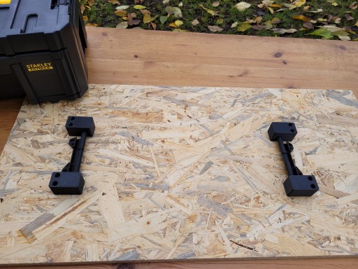 Przed przykręceniem ustawić bloczki razem z wsuniętymi klipsami w taki sposób jak na zdjęciach, a następnie upewnić się że skrzynka po wpadnięciu w bloczki ma je przysunięte jak najbliżej brzegów (to zapobiega kołysaniu się skrzynek przód/tył). Następnie przytrzymując bloczek należy jeden po drugim wkręcić śruby