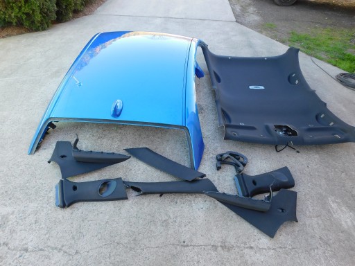 Alfa Romeo Giulia Quadrifoglio QV dach widoczny na zdjęciu. Dach jest kompletny wraz z podsufitką boczkami oraz rączkami.