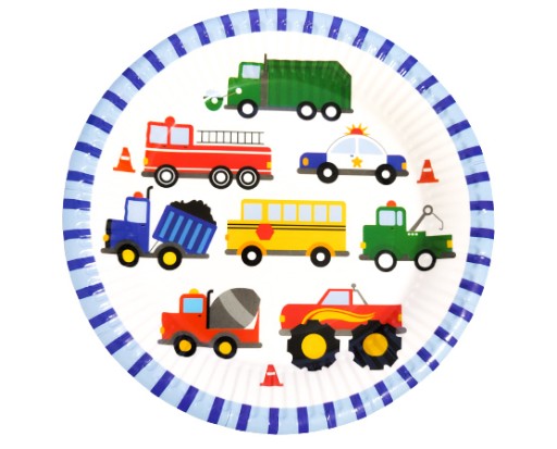 Zestaw talerzyki kubeczki papierowe Auta Koparka budowa na Urodziny