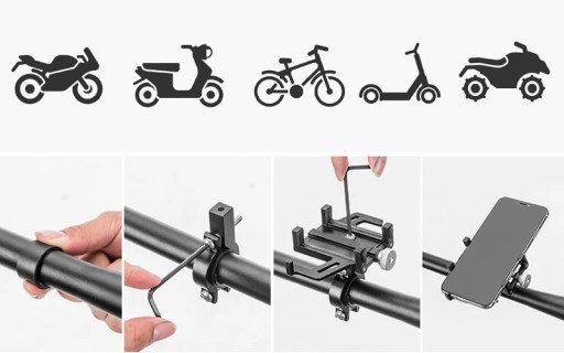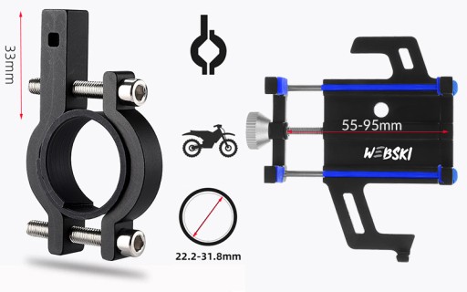 🏍️ 🚲 ORYGINALNY Uchwyt WEBSKI® ATH510 ALUMINIUM BIKE HOLDER do telefonu przeznaczony do motocykla, rowera, skutera, Quada lub hulajnogi.
