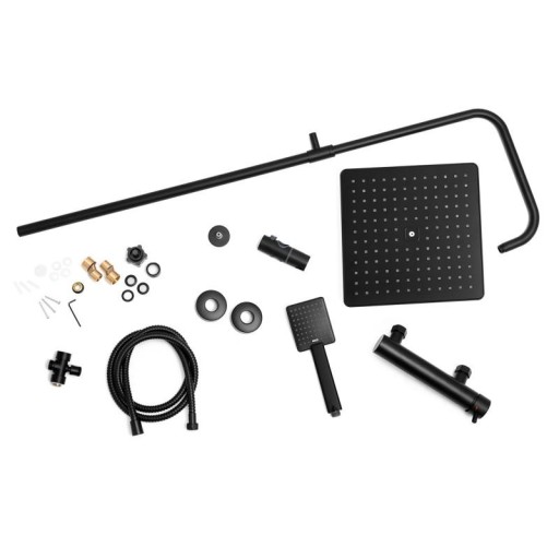Zestaw zawiera wysokiej klasy mechaniczna baterię prysznicową z regulacją przepływu i mieszaczem temperatury wody oraz ciśnieniowy przełącznik jej strumienia między deszczownica, a słuchawką.