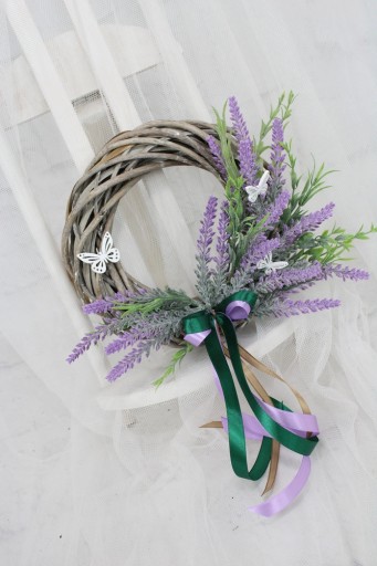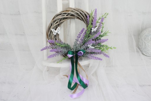 Wianek lawendowy na drzwi mały wieniec lawenda stroik ozdoba motylki