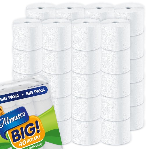 Almusso BIG! to duuuża ekonomiczna paczka trzywarstwowego papieru toaletowego w którym połączono komfort użytkowania oraz oszczędność w jednym. Celuloza, pochodzi z certyfikowanych źródeł odnawialnych plantacji drzew, a folia podlega w 100% recyklingowi