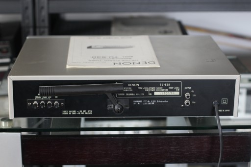 Tuner radiowy Denon TU-530 . Tuner w pełni sprawny , bezproblemowo odbiera stacje , tryb stereo sprawny . Wizualnie w bardzo ładnym stanie , na górnej obudowie ślad po elemencie który stał na nim ( zdjęcie) . W zestawie oryginalna książka .