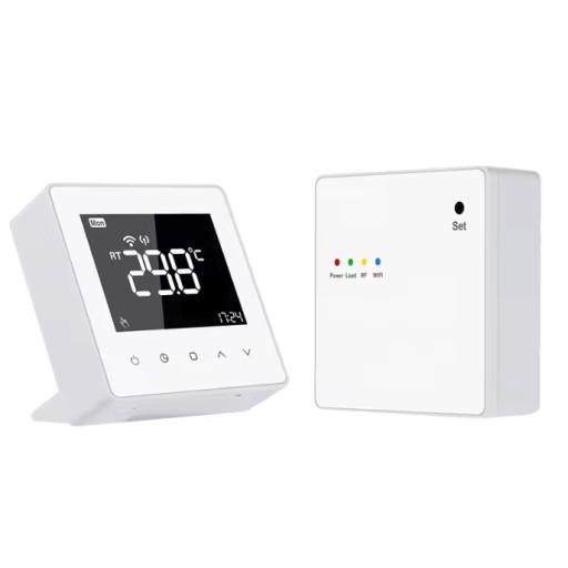 Odkryj zalety nowoczesnego zarządzania klimatem w Twoim domu z termostatem WiFi marki Spreest. To innowacyjne urządzenie zapewniające bezprzewodową kontrolę temperatury to niezbędny element każdego inteligentnego domu. Składający się z odbiornika i nadajnika, termostat umożliwia precyzyjne regulowanie ciepła w Twojej przestrzeni, dostosowując się do Twojego trybu życia i zapewniając komfort na najwyższym poziomie.