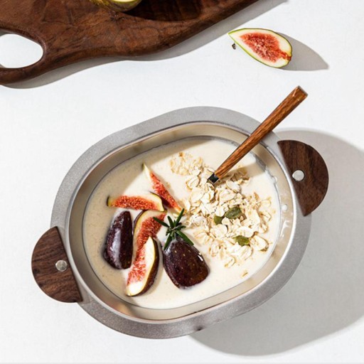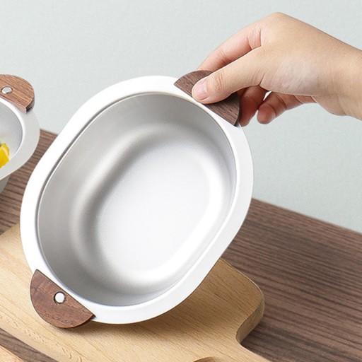 Wielozadaniowa miska ze stali nierdzewnej o pojemności 500 ml z drewnianą rączką na zupę deserową