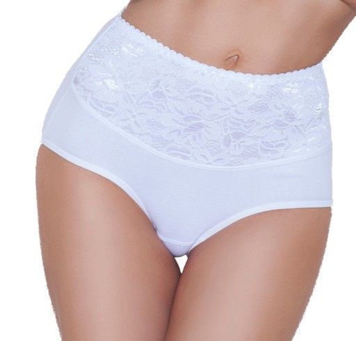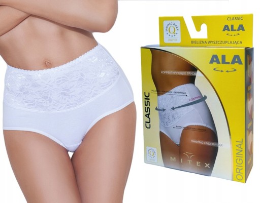 ALA SUPER – figi modelujące. Spłaszczają brzuch i delikatnie niwelują tzw. fałdki. Przód ozdobiony jest koronką o pięknym kwiatowym motywie (od spodu wszyte wzmocnienie z mocno elastycznej dzianiny). Skonstruowane są tak, aby zapewnić Ci komfort codziennego noszenia. Skład: 95% bawełna, 5% lycra/82% poliamid, 18% elastan.