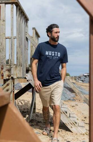 KOSZULKA MĘSKA MUSTO CLASSIC MUSTO SS TEE - koszulka męska w stylu marynistycznym z krótkim rękawem, uszyta z najwyższej jakości bawełny. Na piersi zdobi ją grafika- logo Musto z napisem RACE CREW EST.1964. Prążkowane wykończenie wokół szyi zapobiega deformowaniu koszulki.