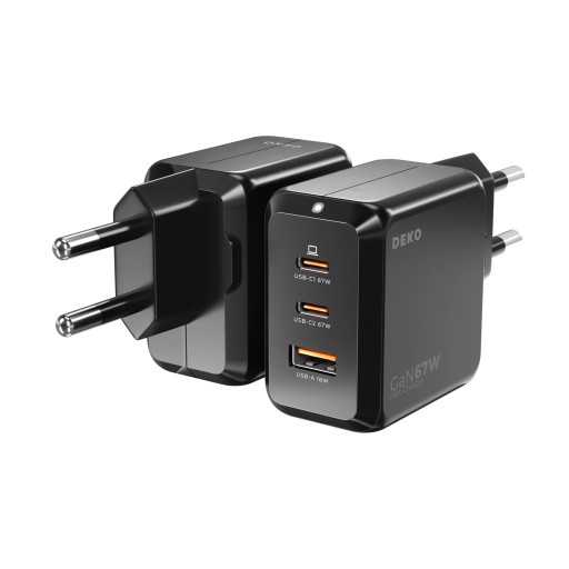 Ładowarka DEKO 67W umożliwia jednoczesne ładowanie trzech urządzeń przy imponującej mocy 67W. Dzięki temu możesz ładować swoje smartfony, tablety, laptopy czy inne urządzenia równocześnie, oszczędzając swój czas.