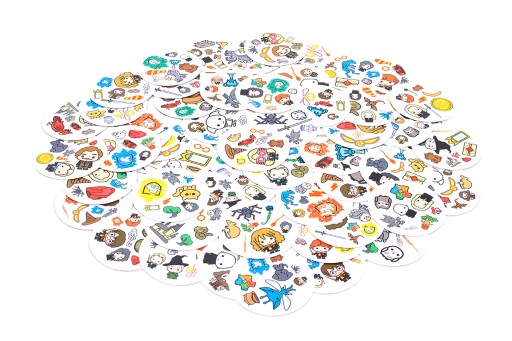 Spójrz na pierwszą kartę, którą trzymasz w ręku oraz na tę, która leży na środku stołu. Znajdź na nich wspólny symbol, nazwij go i szybko pozbądź się swojej karty. Teraz następna! Tylko nie zwątp, dwie karty zawsze łączą się ze sobą dokładnie jednym symbolem!