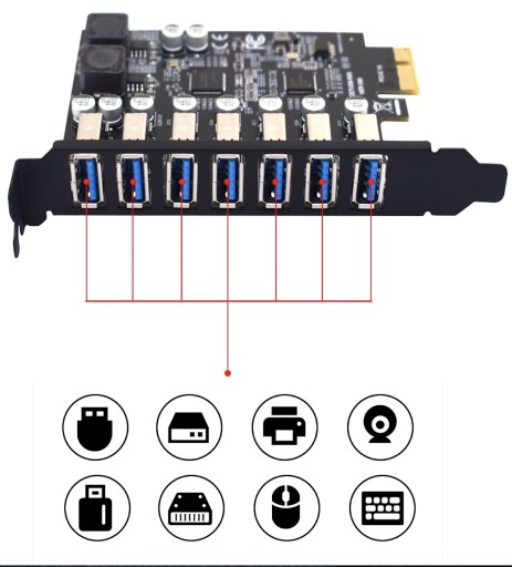 Koncentrator HUB kontroler rozdzielacz USB 7 x USB 3.0 3.2 PCI-E 7 portów