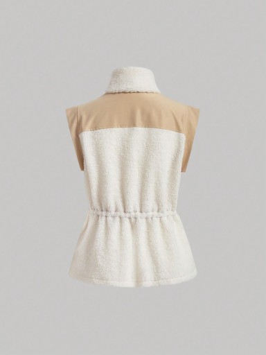 БЕЛО-БЕЖЕВАЯ КЛАССИЧЕСКАЯ ПРОСТАЯ КУРТКА НА МОЛНИИ SHEIN 36