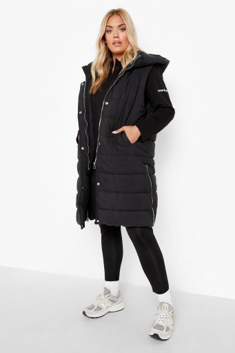 ЧЕРНЫЙ РУКАВ, СТЕГАНЫЙ, УТЕПЛЕННЫЙ ЖИЛЕТ, МОЛНИИ, ДЛИННЫЙ BOOHOO 48